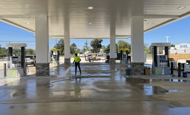 Gas stations and convenience stores need regular cleaning more than other common facilities in almost any other industry. The high traffic of cars and people interact directly with the exterior of your business, often leaving dirt, grease and oil stains, a mess at your pump and parking areas.